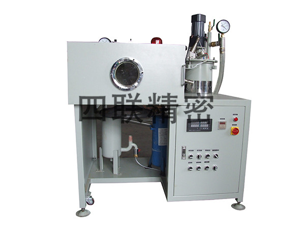PR510型树脂真空灌封机为单注头单轴旋转灌封结构。设备简易,无计量混合系统。适合中小企业小批量树脂真空灌封。 二、主要技术规格及精度 1.真空状态下处理树脂料,脱气时间小于30min; 2.控制方式:PID智能温度控制; 3.工作真空度:-0.1MPa; 4.工作温度:室温~80℃; 5.电源:220V±10%、单相、50Hz±2%;