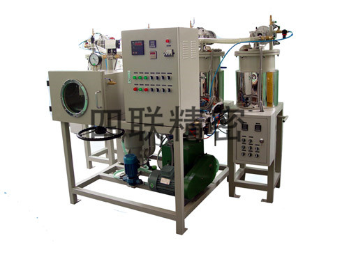一、设备的用途及功能 该系统可实现在真空室内进行树脂定量灌封。整个过程分为树脂的加热保温、计量配比、在线混合、自动或手工灌封及清洗五个过程。加热保温采用PID智能温度控制方式;定量灌封应用先进的高精度强制性容积计量方式(或螺杆泵计量方式);在线混合采用静态混合技术;清洗工艺简便,特制配方的清洗液确保混合器的使用寿命。废液回收装置和真空过滤系统确保高速脱气和环境保护。 设备的优点:全封闭处理树脂料,避免人体接触;生产操作简便,实现单人单机操作;计量泵与定量泵系统集成;配比及定量精度高;在线混合方式,混合效率高,无需等待时间。 二、主要技术规格及精度 1.真空状态下处理树脂料,脱气时间小于30min; 2.控制方式:自动配比,自动定量浇注;设备控制面板显示具体灌封工作过程中; 3.浇注方式:配一套真空室,自动或手工灌封; 4.重量比例精度:±1.5%; 5.混合精度:σ/X≤2%; 6.工作真空度:100Pa~350Pa; 7.极限真空度:50Pa(0.38托); 8.工作温度:25℃~110℃; 9.最高加热温度:110±5℃; 10.单次灌封量:≤30g; 11.压缩空气压力:0.45MPa~0.6Mpa; 12.电源:3相380V、50Hz; 13.最大功率:3kW。 三、系统配置 1.储料罐: A罐:有效容积20升电机搅拌脱气 一套 B罐:有效容积20升电机搅拌脱气 一套 2.计量泵:容积式在线定量配比 一套 3.混合器:静态混料器 一套 4.加热系统:数字温控表 一套 5.控制系统: 一套 6.清洗装置:清洗罐、废液回收装置、管路阀门、气压驱动 一套 7.浇注系统:380×380×370真空浇注室 一套 8.真空系统:TRP-12真空泵,数显真空计,过滤冷凝器 一套 四、适用液体材料一览 丙烯基类、氨甲酸酯类、环氧树脂类、乳胶、厌氧胶类、醋酸乙烯类、氰基丙烯酸酯类、硅胶类、热融胶、聚酰亚氨类、UV胶、聚氨酯等树脂粘接剂。 五、生产周期 40天(至合同生效之日起工作日) |